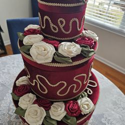 $45.00 - (3) Elegantly Decorated Round Boxes with Velvet Fabric/Silk Roses & Much More Design Accents! Multifunctional Uses/Like New Condition!$45Morrow, OH