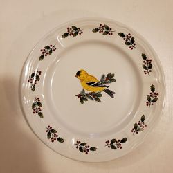 Gibson Designs Luncheon Plate SONGBIRDS Holly Trim Border Gold Yellow Finch Bird$15Troy, OH
