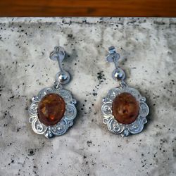 Sterling Silver 925 Cognac Amber and Silver Leaf Pattern Dangle Earrings$18Centerville, OH