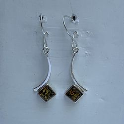 Green Amber Sterling Silver Drop Dangle Earrings, Beautiful Silver Accents$25Sugarcrk Township, OH