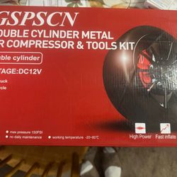 GSPSCN Silver Tire Inflator Heavy Duty Double Cylinders with Portable Bag- Car Accessories,Metal 12V Air Compressor Pump 150PSI with Adapter for Car, $50Dayton, OH