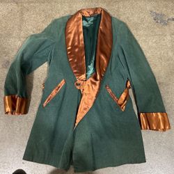 Vintage Velour Men’s Green Corduroy Smoking Jacket Satin Shawl Collar Blazer size M$90Columbus, OH