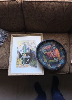 Signed watercolor and hand painted wood bowl$30Grandview Heights, OH