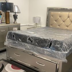 Queen Bed Dresser And Mirror With Glass Paneling Silver$2,199Dublin, OH