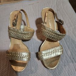 Jack Rogers Established 1969 Gold Braided Leather Open Toe Sandal Platform W E D G E C O R K Size 8 Paid 170 From Macy's Only W O R N Once$65Columbus, OH