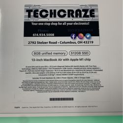 2020 MacBook Air 13” Apple M1 Chip 512GB Ssd 8GB Ram Brand New Sealed $1,249Columbus, OH