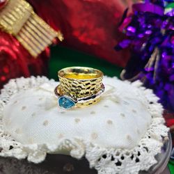 Kwanli 3 Tone Gold Over Silver Blue Crystal Spinner Ring Size 6$7Canal Wnchstr, OH