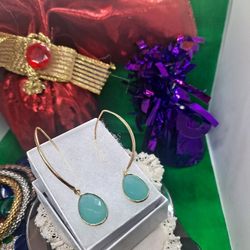 Natural Aqua Chalcedony 18kt Gold Pltd Dangle Earrings $14Canal Wnchstr, OH
