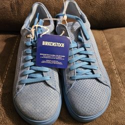 New Birkenstock Bend Low Women US 8- EU 39 Sky Blue Suede Embossed Leather Shoes NEW$60Mentor, OH