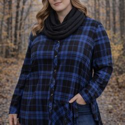 Susan Graver Plus Size 2X Blue Black Plaid Button Front Tunic$19Erie, PA