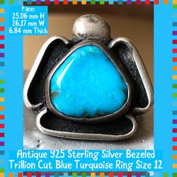 Antique 925 Sterling Silver Bezeled Blue Turquoise Ring 12$80Painesville, OH