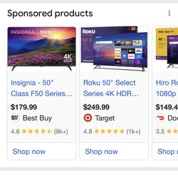 50 in insignia smart tv$125Garfield Heights, OH
