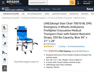 LINE2design Stair Chair 70010-BL EMS Emergency 4 Wheels Ambulance Firefighter Evacuation Medical Transport Chair with Patient Restraint Straps, 350 l$220Norton, OH