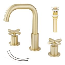 GGSTUDY Brushed Gold Bathroom Faucet 3-hole 2-handle 8in-16in Widespread With Pop-up Drain New $30Cleveland, OH