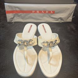 Prada Women's Brand New White Sandle With Silver Accent$200Jackson Belden, OH