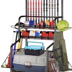 Uxwuy Fishing Rod Holders for Garage Fishing Pole Holders, Fishing Tackle Organizer Storage Up to 12 Rods with Hooks and Wheels, 3 Layer Fishing Cart $25Parma, OH