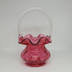 Vintage FENTON Cranberry Coin Dot Glass Ruffle Basket Crystal Rope Handle 8.5"$25North Canton, OH