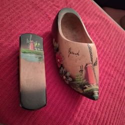 VINTAGE HAND PAINTED WOODEN DUTCH SHOE & MATCHING SHOE BRUSH $8Cleveland, OH
