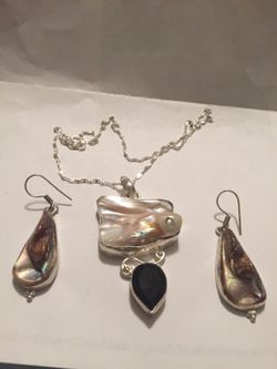 Fresh water Pearl and black stone necklace with pearl earrings$40Canton, OH