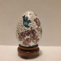 Vintage Chinese Multi-colored Floral Cloisonne Egg on Wooden Stand Collectible $20Vandalia, OH