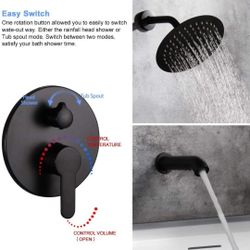 Matte Black Tub and Shower Trim Kit Shower Faucet Set with Tub Spout with Rough-in Valve, Single Handle Bathroom Luxury Rain Mixer 8 Inch Shower Head $125Sheffield Lake, Ohio