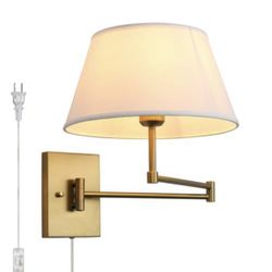 JIMUBEAM Vintage Plug-in Cord Wall Sconce with White Fabric Shade, Indoor Swing Arm Wall Mounted Lamp with on/Off Switch, Antique Brass Sconce Wall Li$50Avon, OH