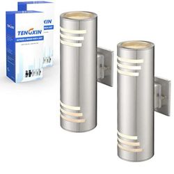 TENGXIN 2 Pack Outdoor Wall Light,Up Down Modern Outdoor Wall Sconce with Stainless Steel Cylinder,Brushed Nickel Exterior Lighting Fixtures$100Avon, OH