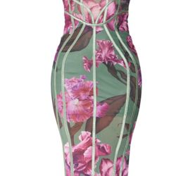 GREEN FLORAL PRINT MESH BINDING DETAIL MIDAXI DRESS$45Richmond Heights, OH