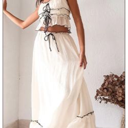 (New!) (S) Maidens Tie Detail Overlock Maxi Skirt & Crop Top (Beige) (Small)$40Avon Lake, OH