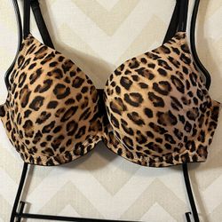 PINK by Victoria's Secret 42DD Leopard Print Bra Black Trim Bow full coverage $27Avon Lake, OH