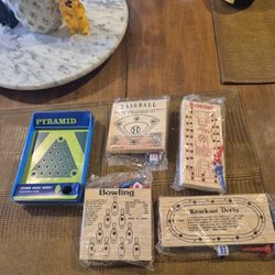 Four brand new wooden handheld travel sports games, and one plastic and held game$18Eastlake, OH