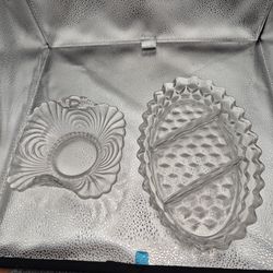 Story , crystal american clear , divided relish dish , and cambridge glass can dish$26Eastlake, Ohio