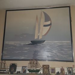 K. Wilson Beach Boat Painting (Gold, Brown, Tan, Green) 24” x 36”$50Mentor, OH