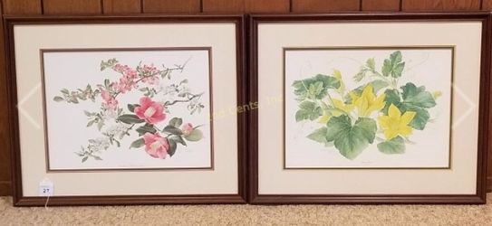 Pair Anne Ophelia Dowden Signed Floral Prints, 24" X 20" Each Amellia & Flowering Quince 418/600$45Euclid, OH