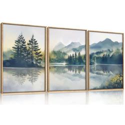 HPNIUB Large Green Mountain Framed Canvas Wall Art Set, Nature Foggy Forest Lake Reflection Wall Decor,$55Rocky River, OH