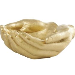 Deco 79 Polystone Hands Decorative Sculpture Open Home Decor Statue, Accent Figurine 15" x 16" x 7", Gold