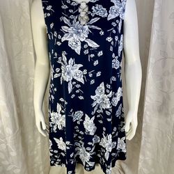 Roz & Ali Navy Blue White Floral Sleeveless Keyhole Ring Dress XL shift dress$32Avon Lake, OH