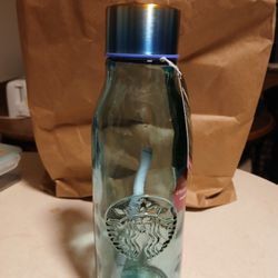 NIB STARBUCKS HAWAIIAN COLLECTION, Teal Glass, Water Bottle $25Lyndhurst, OH
