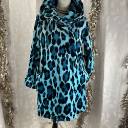 Betsey Johnson Teal Leopard Fleece Hooded Robe XS/S Blue Black Animal Print$31Avon Lake, OH