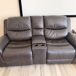 Power Reclining Leather Loveseat w/ Console & Cup Holders Like new, Can drop off with delivery fee.$450Westlake, OH