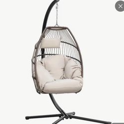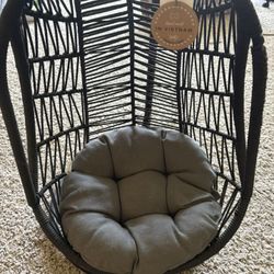 Black Woven Hanging Chair Swing With Grey Cushion-tags attached $20North Royalton, OH