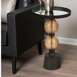 22" Mirrored Top Side Table with Metal Base - Contemporary Black and Gold Orb Accent Table for Home or Office Decor$199Chardon, OH