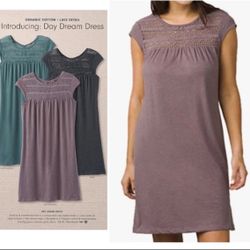 Prana day dream shift tshirt dress sz M dusty purple crochet pleated cap sleeve$20Avon Lake, OH
