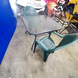 Square Glass Table With 2 Green Plastic Chairs$60Avon, OH