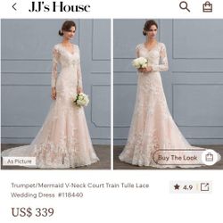 JJ House Trumpet/Mermaid V-Neck Court Train Tulle Lace Wedding Dress size 12 Ivory/nude$150Copley, OH