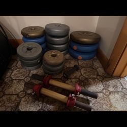 250 For ALL!!!30 lb 20 lb 15 lb 10 lb at 7.5 lb all in sets and a bench, stand for weight$250Maple Heights, OH