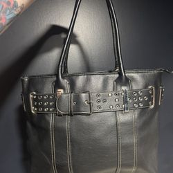 Zone88 Black Studded Belt Tote Bag | Faux Leather Shoulder Purse$20Noblestown, PA