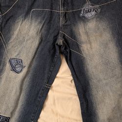 Vintage Mens NBA UNK Denim Basketball Blue Jean Pants 40x34, 100% Cotton. Lots Of Patches, Stitching. East Or Westside.$75Toledo, OH