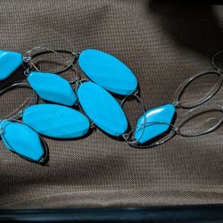 NEW Womens Pierced Silver Loop Earrings + 38" Blue Necklace. Nickel and Lead Free.$5Oregon, OH