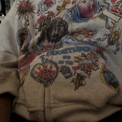 ($7)_(XL)_sleeveless, cream, quilted,vest, with hood. $7Rocky River, OH